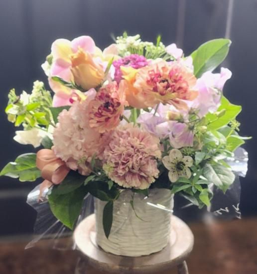 明るいパステルカラー 季節のおまかせ アレンジメント